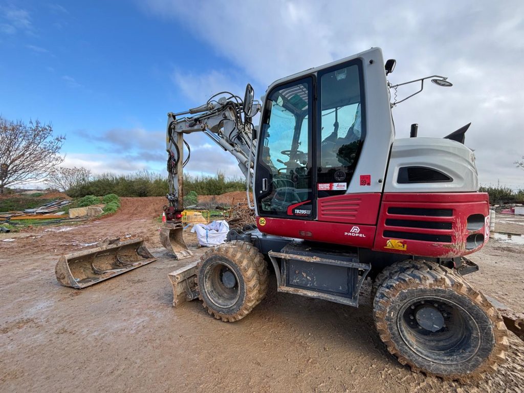 Instalación sistema 3D Leica MC1 en excavadora Takeuchi obras Metro Sevilla por equipo GEOAVANCE